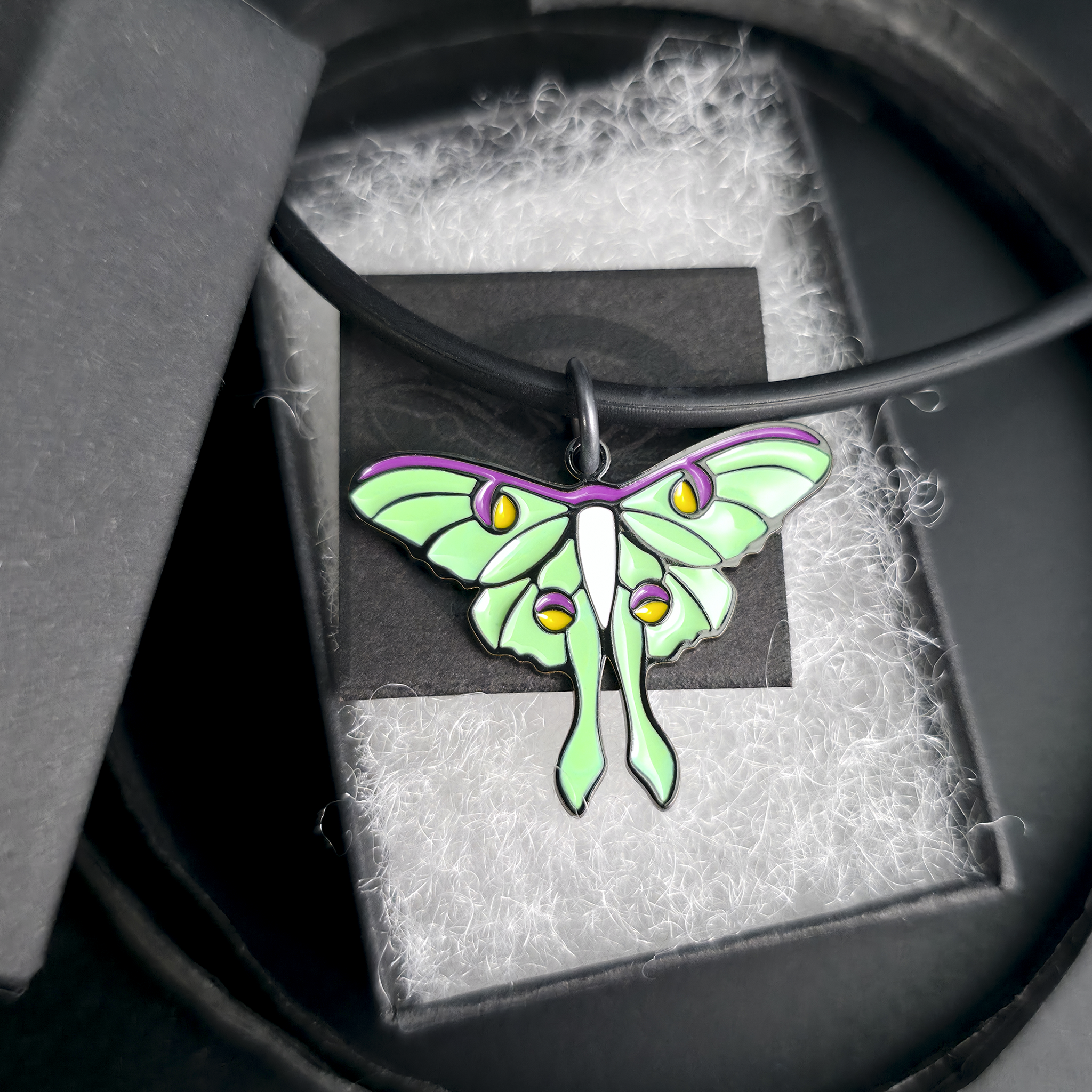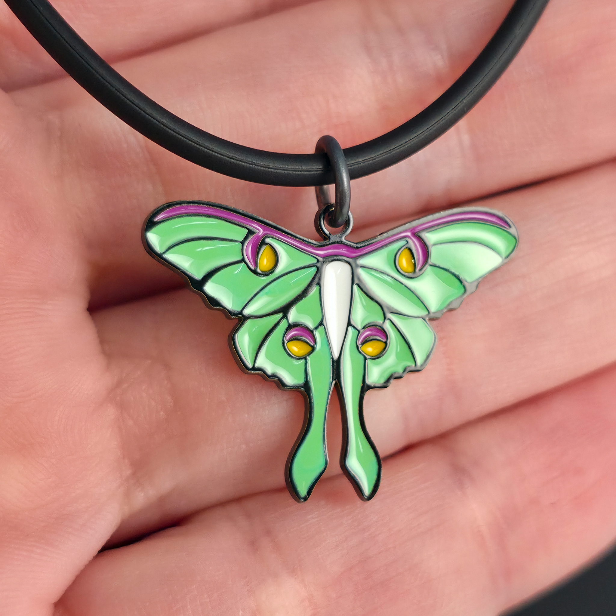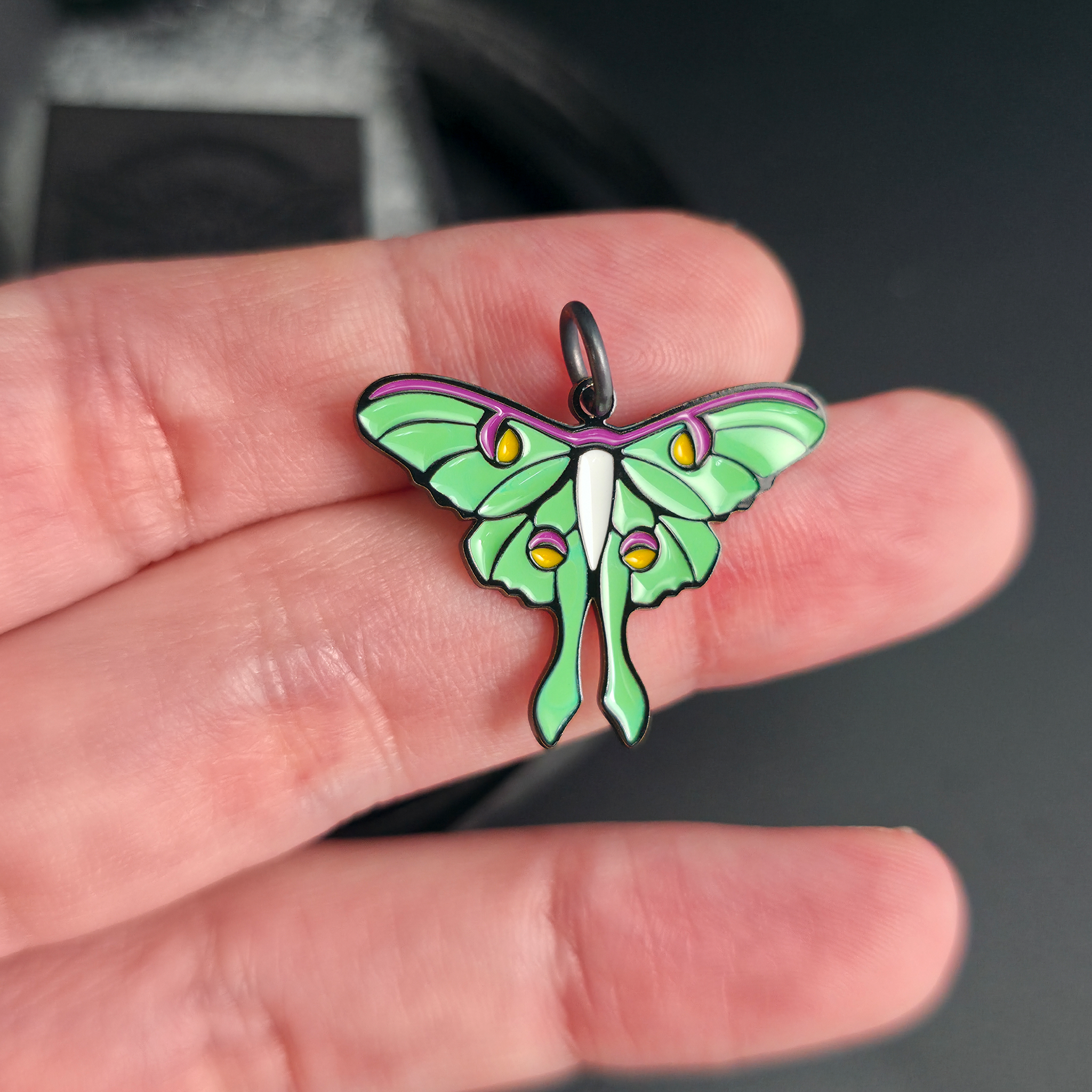 A nocturnal icon for the lovers of moonlight and mystery. Each luna moth pendant is crafted one at a time, starting as a drawing in my sketchbook and ending with hand-applied colorful details.