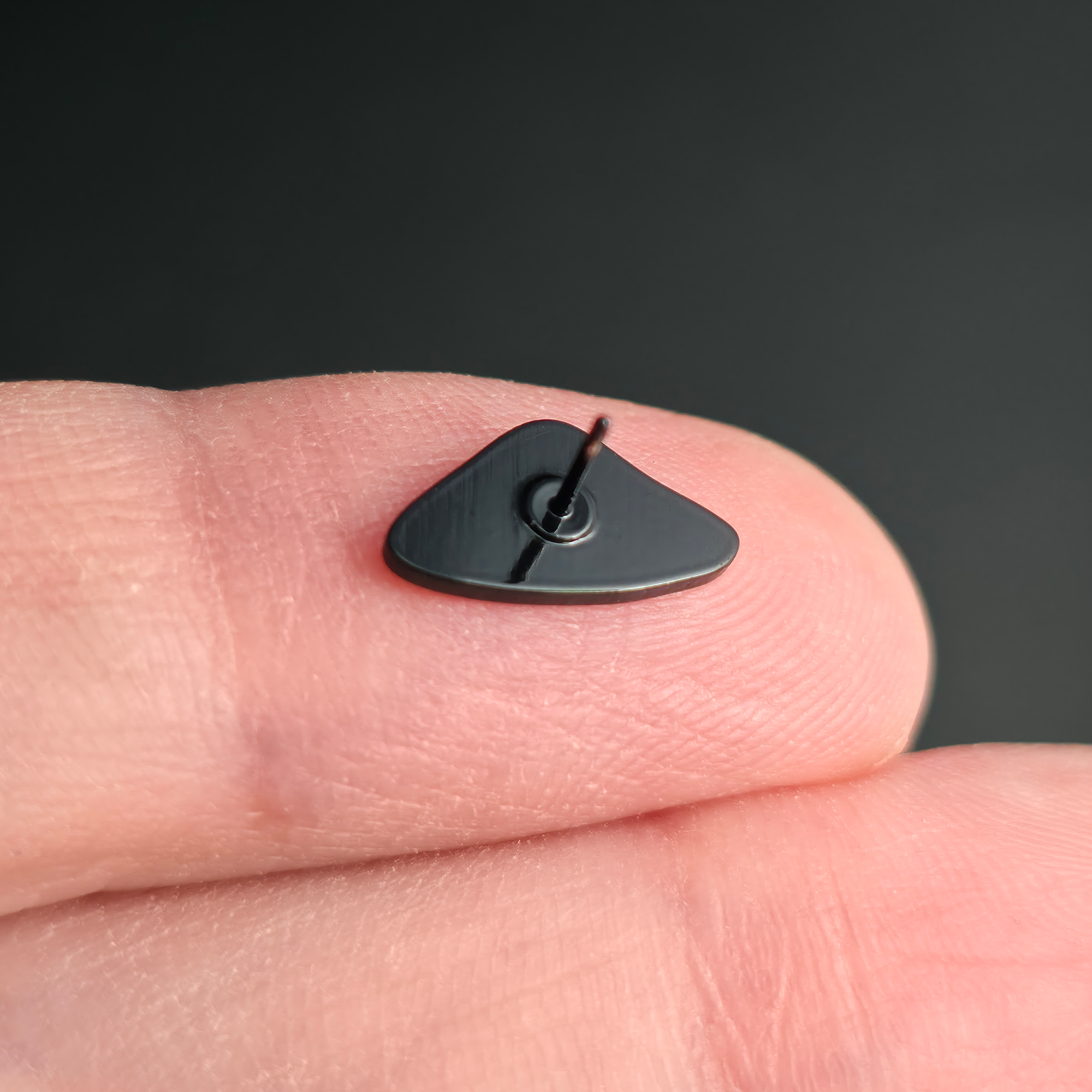 - The top is made out of sterling silver. It has a tiny 316L steel pin soldered to the back side. Plated with a ceramic e-coating.