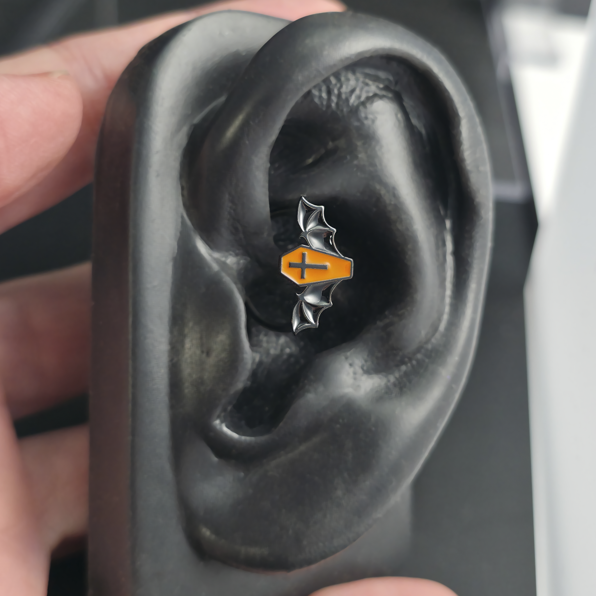 Halloween Orange & Black Coffin Bat Septum + Daith Ring