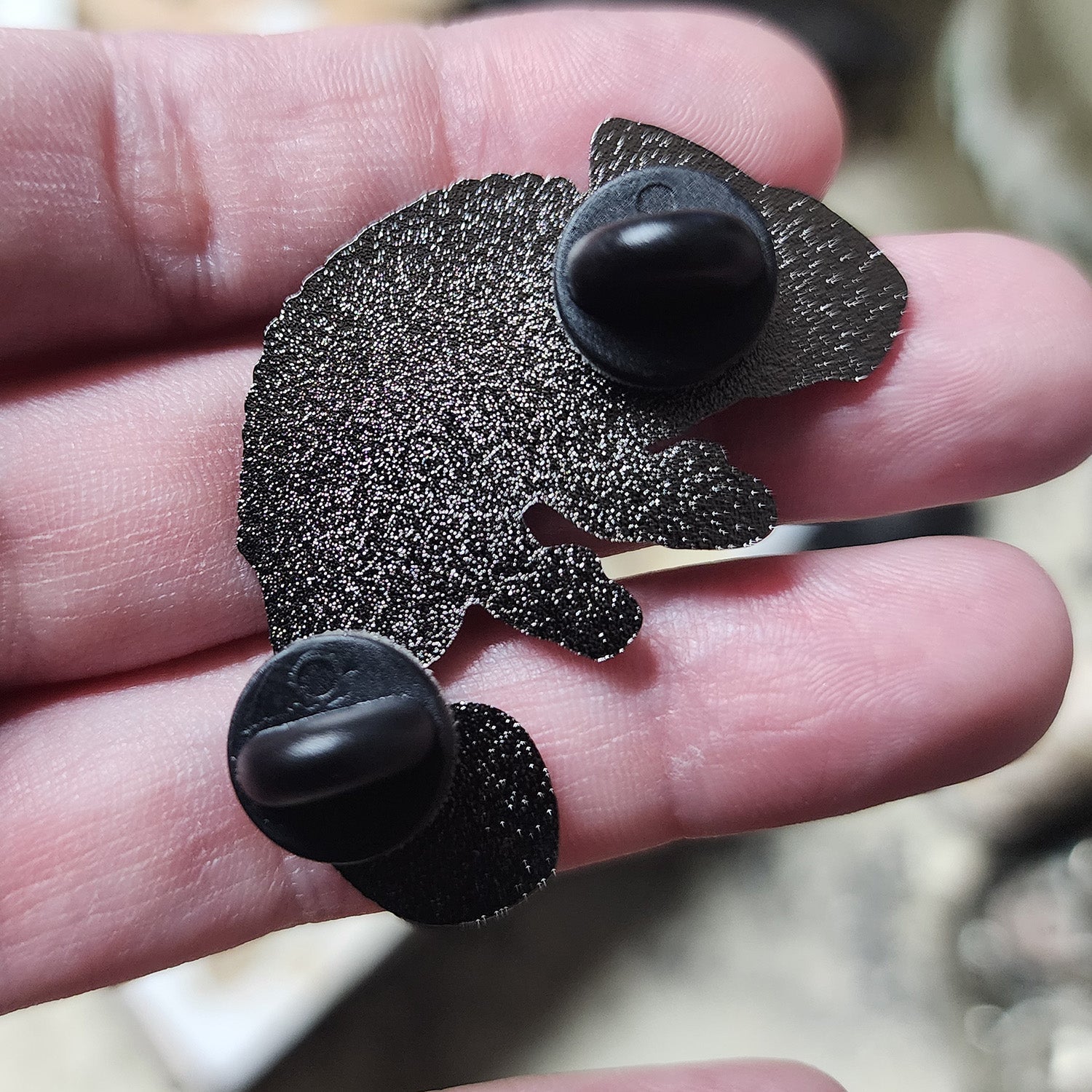 This black and white hard enamel pin features my chameleon skeleton design.