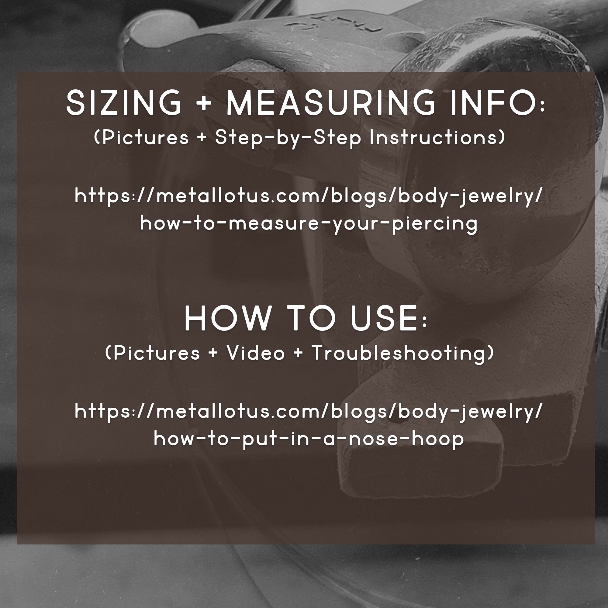 For the safety of all my customers, I don’t accept returns on piercing jewelry — all body jewelry sales are final. But don’t stress: all my septum and daith pieces are captive beads, which means if you accidentally order the wrong size, it’s an easy fix. Just swap the hoop! Not sure what size you need? Send me an email before you check out — I’m happy to help you get it right the first time.